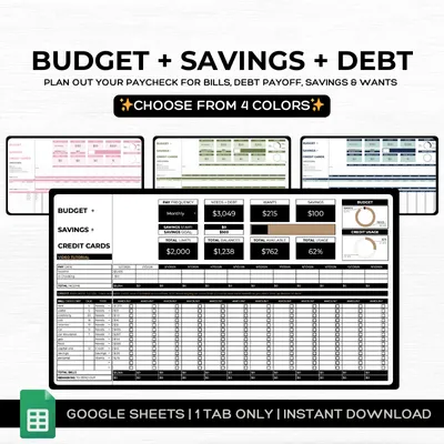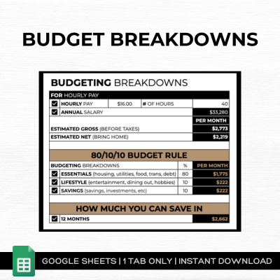 Includes the budget sheet plus rent & savings calculators, bill-splitting guides, & more to help manage your money easier.